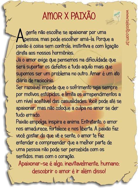 Eu nunca tinha entendido a diferença de AMOR x PAIXÃO, só lendo esse texto que entendi...