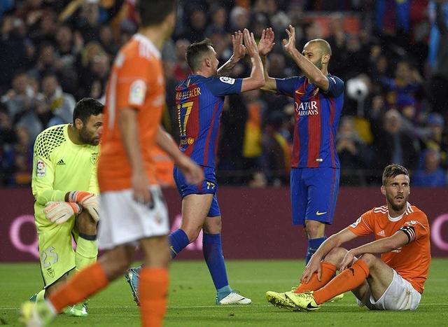 Aos 19', Alcacer tirou do goleiro e marcou o quinto; aos 22', o zagueiro Mascherano marcou o sexto gol da partida - seu primeiro em 7 anos de clube - e, para selar a goleada, Alcacer driblou o goleiro e marcou o sétimo, aos 41' da etapa final.