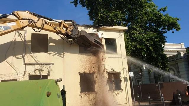 Dopo gli interventi di rimozione degli infissi e le operazioni preliminari, sono entrate nel vivo mercoledì mattina le operazioni di demolizione dell'ex palazzina IAT in piazzale Cesare Battisti.