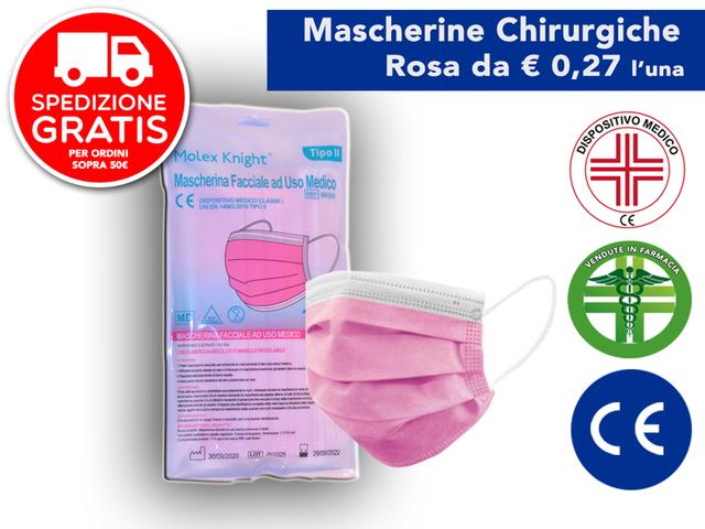 Le mascherine chirurgiche rosa e nero Opaco di tipo II sono un prodotto dall'elevato potere filtrante (BFE ≥ 98%) realizzate con 3 strati: