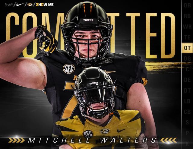 Missouri’s 2020 football recruiting class grew to four on Wednesday night, as massive St. Louis (Mo.) Mehlville offensive tackle Mitchell Walters announced his commitment to the Tigers on Twitter.