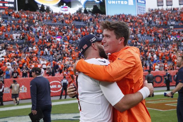 - The Bears beat the Broncos 16-14 on Sunday, but honestly, who cares about that?!? Here’s a picture of Chase Daniel and Drew Lock after the game! (sigh)