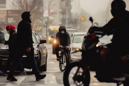 The streets of Washington Heights are livelier than other neighborhoods, but still muted. I see a woman weeping as she walks by on Fort Washington Avenue. Her face in one hand, sobbing into her cellphone. I take Broadway all the way downtown. Normally the avenue would be too terrifying to bike on, but traffic is almost nonexistent. I regret the decision when a kid on a motorcycle turns uptown against traffic and I almost wipe out. He pops a wheelie and laughs. I curse into my face mask but ride on.