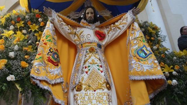 The festival honours Jesus Christ and his statue is central to the event. It is taken out of the church where it is normally kept and placed on a purpose-built altar in the street. All dancers stop and pray in front of it, often trying to touch its embroidered robes.