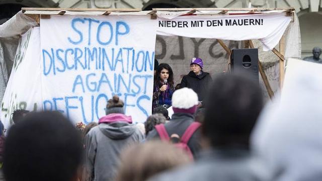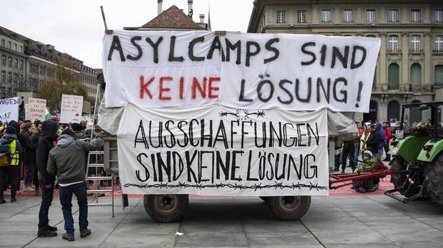 Manifestazione Berna contro i campi profughi (KeyStone-ATS)