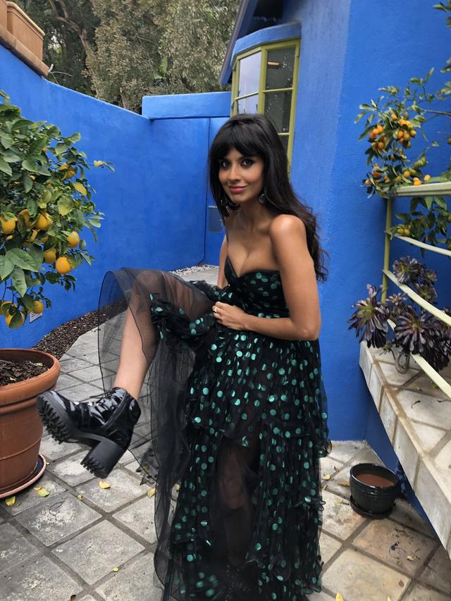 Jameela Jamil, actriz de The Good Place, demuestra que viste de acuerdo a su estilo y no sigue estereotipos. Para los Critics' Choice Awards lleva botas junto con su vestidos Oscar de la Renta.