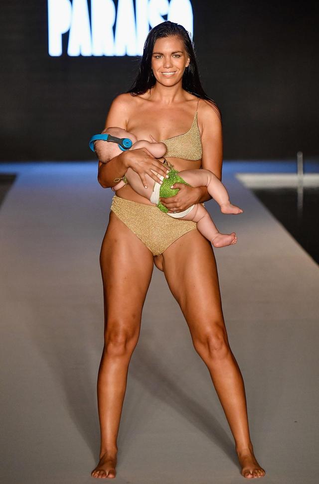 La modelo Mara Martin se cansó de esos comentarios y desfiló para la revista Sports Illustrated en Miami, EEUU, con su bebé en brazos mientras lo amamantaba.