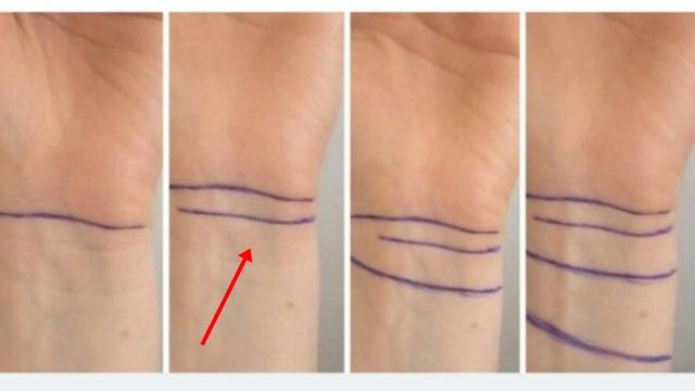Se a primeira linha do pulso é visivelmente marcada, representa 23-28 anos de vida, a segunda linha do pulso indica 46-56 anos de vida, a terceira linha 69-84 anos de vida, e a última ou quarta linha representa mais de 84 anos de vida, a quarta linha é muito rara. O número médio de linhas no pulso é de duas a três, se você já contou o número de linhas no pulso, continue lendo e descubra o que significa.