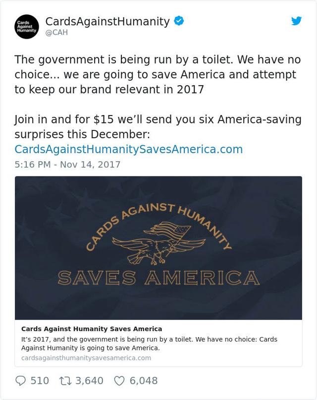 Cards Against Humanity, the self-described “party game for horrible people” is doing something totally not horrible. Notorious for its crazy marketing campaigns, the company announced a holiday promotion called “Cards Against Humanity Saves America”. Basically, the company purchased a plot of vacant land on the border of the United States of America and Mexico, preventing Donald Trump from building his wall.