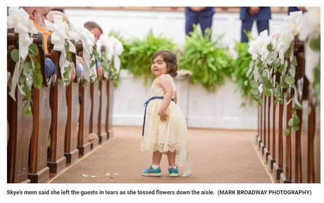In a blog posted to their wedding photographer’s website, Ryals said she wasn’t sure if Skye would be able to make it due to her fragile health. She has undergone blood and platelet transfusions, had her spleen removed, has had three bone marrow transfusions and endured a 10-month stay at UCLA Mattel Children’s Hospital, People reported.