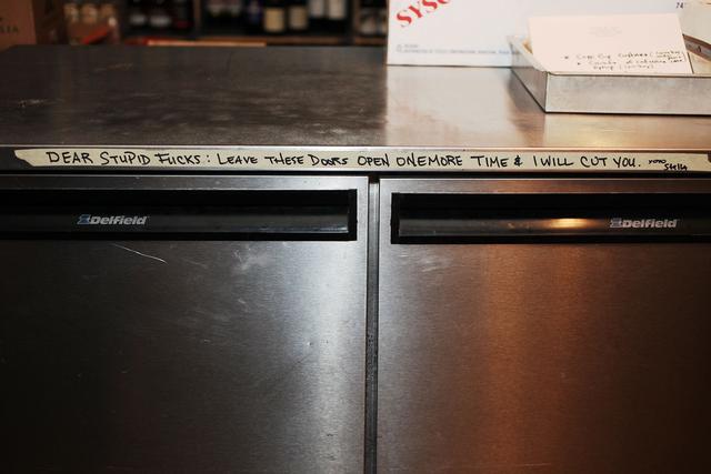 Stella's fridge at her old restaurant. [Photograph: J. Kenji López-Alt]