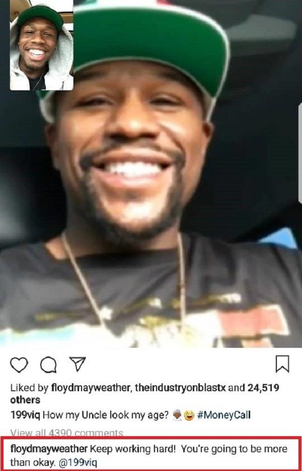 Marquise shared screenshot of a Facetime conversation he had with Mayweather who he calls ‘uncle. Sharing the image on Instagram, Marquise wrote: ‘How my Uncle look my age* #MoneyCall’. In a reply the boxing legend wrote: ‘Keep working hard! You're going to be more than okay.’