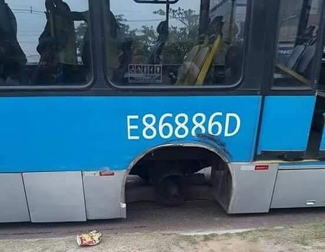 A roda de ônibus do BRT se soltou durante uma viagem no corredor Transoeste, na manhã desta segunda-feira (1), na Zona Oeste do Rio.