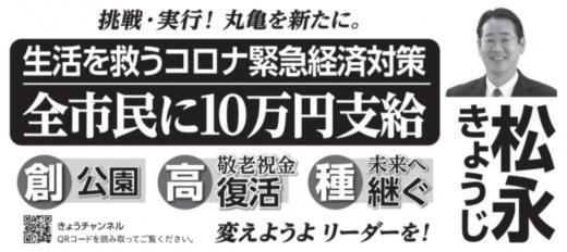 丸亀市の人口は約11万人。全員に10万円を給付する場合、100億円を超える費用が必要になります。