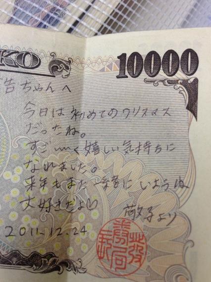 クリスマスイブに女が男にメッセージ書いた万札を渡すシュチュが分からん。