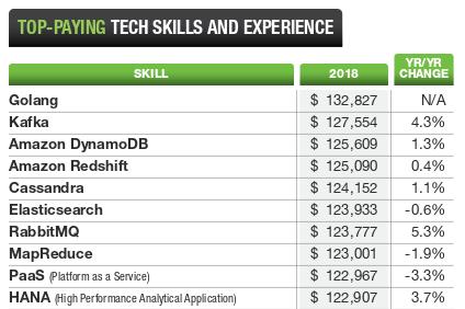 Le salaire annuel moyen d’experts du langage de programmation Go développé par Google et des contributeurs de l’Open Source, par exemple, atteint 132 827 dollars.