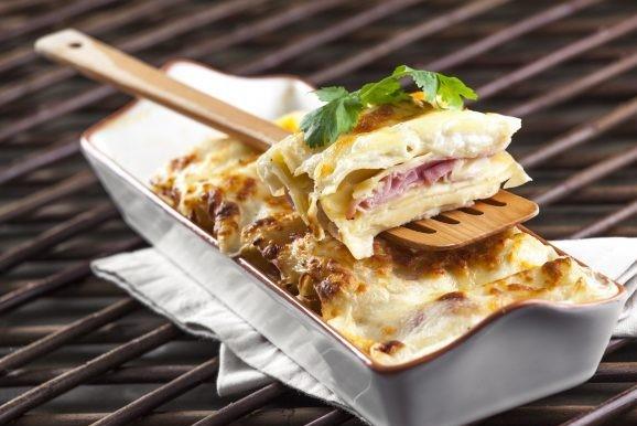 Seque-os bem, enrole cada fatia de queijo numa fatia de fiambre e disponha no interior dos canelones. Reserve.