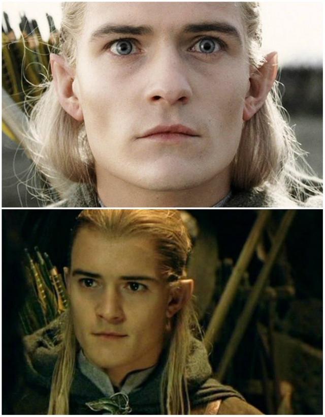 Em ‘O Hobbit’, Legolas tem olhos azuis claros, mas na trilogia ‘O Senhor dos Anéis’ eles eram quase pretos.