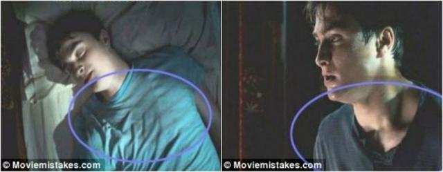 Em ‘Harry Potter e a Ordem da Fênix’, a camiseta de Harry é alterada em seu sono, de uma gola comum a uma com botões.