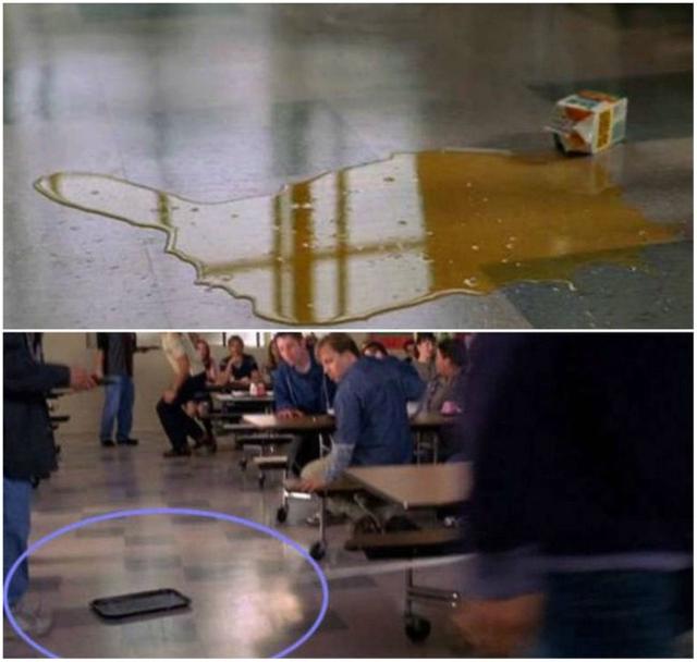 Nesta cena, Mary Jane escorrega em um pouco de suco derramado, mas na próxima cena, o derramamento desapareceu. Pisos auto-limpantes?