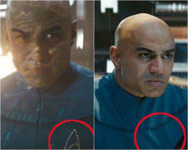 O capitão Robau é visto usando um crachá da Frota Estelar, mas, assim que ele se senta na cadeira, o emblema desaparece magicamente.
