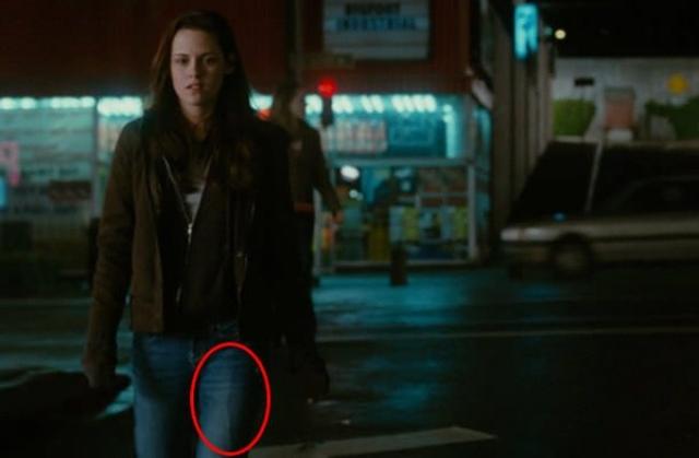 Você pode ver claramente um fio passando pelo calça jeans de Bella.