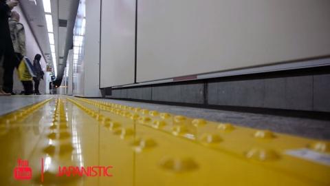 映像では、点字ブロックや点字による案内が、