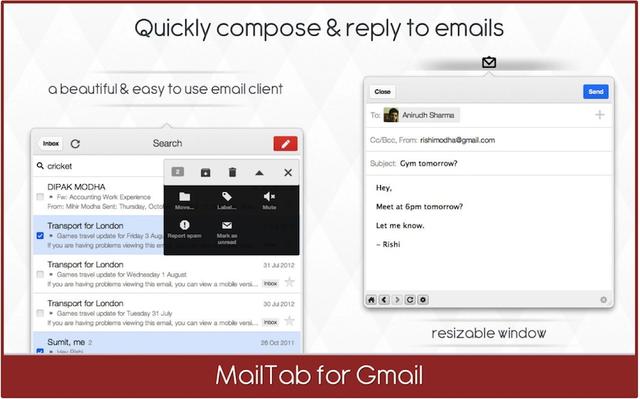 En la Mac App Store tenemos a nuestra disposición la aplicación MailTab for Gmail, una aplicación que nos muestra en una ventana que se despliega desde la barra superior de menús nuestra cuenta de Gmail y a través de la cual no solo podemos abrirlos, sino que también podemos contestarlos directamente.