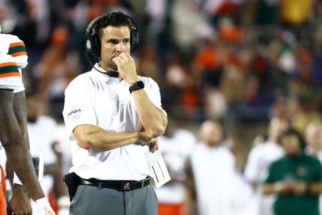Miami Hurricanes head coach Manny Diaz looks on during the second half of his team’s game against the Florida Gators at Camping World Stadium on August 24. | Kim Klement-USA TODAY Sports