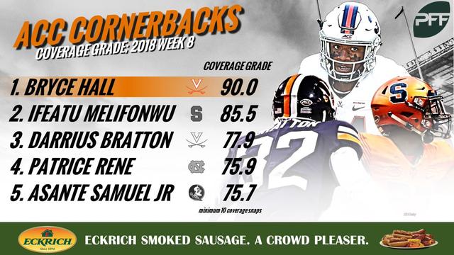 Something we’ve grown accustomed to this season is Bryce Hall’s excellence at the cornerback position. In last weekend’s game against UNC, the junior, once again, did not disappoint, earning the best coverage grade of any cornerback in the conference. His lockdown ability continues to beg the question: why do quarterbacks keep throwing in his direction?