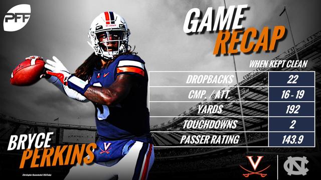 PFF also highlighted quarterback Bryce Perkins, who had himself a nice day against the Tar Heels. Perkins, when kept clean by his offensive line, completed 16 of his 19 pass attempts and tallied two touchdowns.