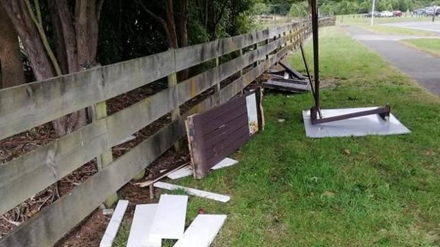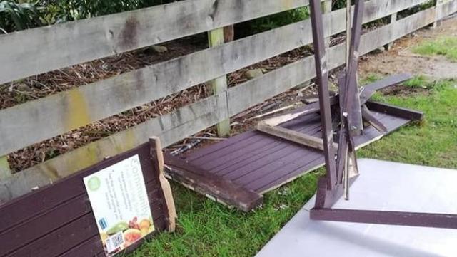 The family believes the fruit-and-vege stand, bolted to a fence on Totara Park Rd in Upper Hutt, was hit by a car sometime after 11pm on Saturday.