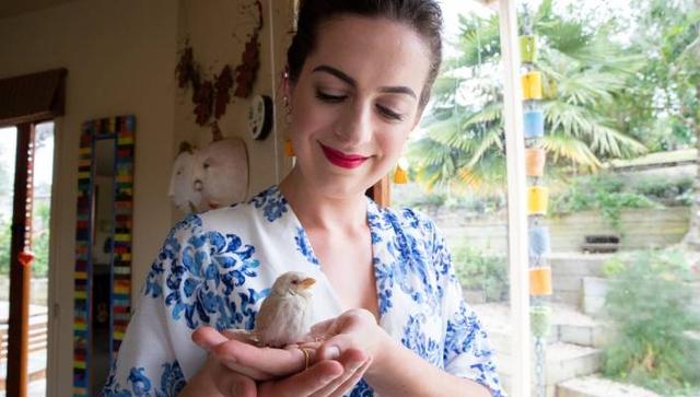 Eden Chappell is helping nurse Luna, a rare albino sparrow.