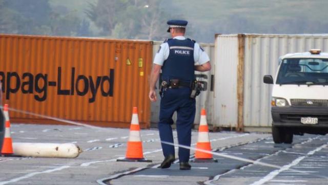 Police at Port Chalmers after a cruise ship worker Allan Allarde Navales was killed.