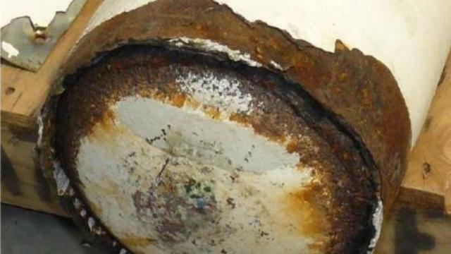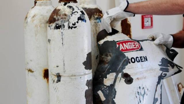 It found the nitrogen cylinder burst at below its normal working pressure, as severe corrosion reduced the wall thickness to about 30 per cent of its original thickness.