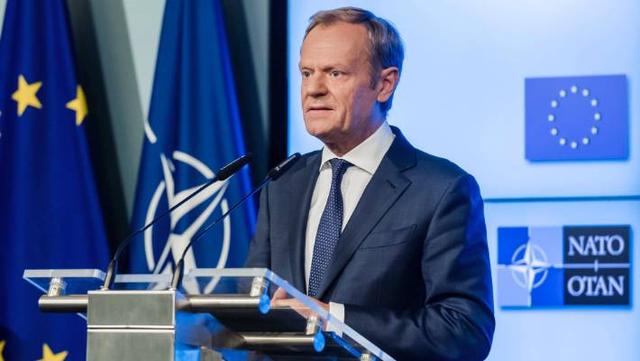 European Council President Donald Tusk addresses the media after the signature of the second EU NATO Joint Declaration, in Brussels on Tuesday, July 10, 2018. Prime Minister Jacinda Ardern is set to meet with Tusk to discuss NZ's FTA with the EU, as well as NATO Secretary General Jens Stoltenberg.
