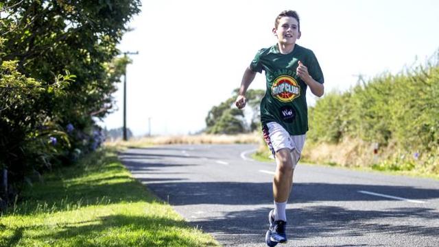 His only problem is sore knees from running 3.6 kilometres on the rural road outside his parents' house.