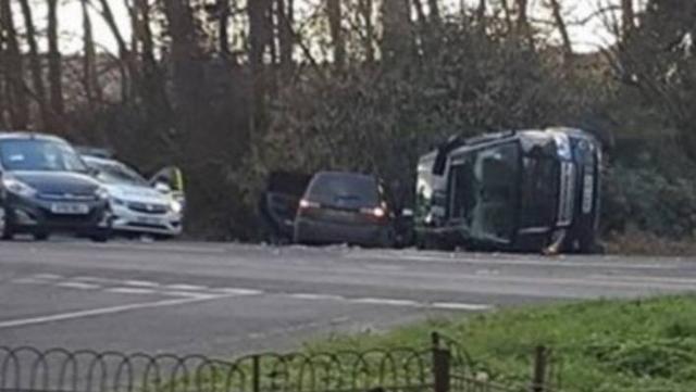 Berneen Caney, a 25-year-old support worker who was nearby, said: "It appeared to be quite serious, there was a lot of glass over the road as well as debris. I saw one of the cars was quite badly damaged ... its windows were smashed. By the time I passed by, [it] had been tipped back up on its wheels."