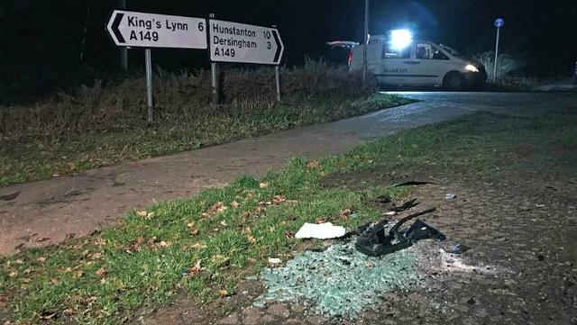 The scene near Sandringham Estate where Prince Philip was involved in a road accident.