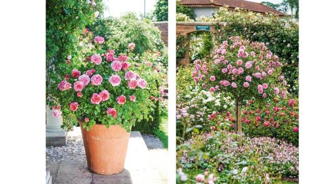 Pillar rose (left) and standard rose.