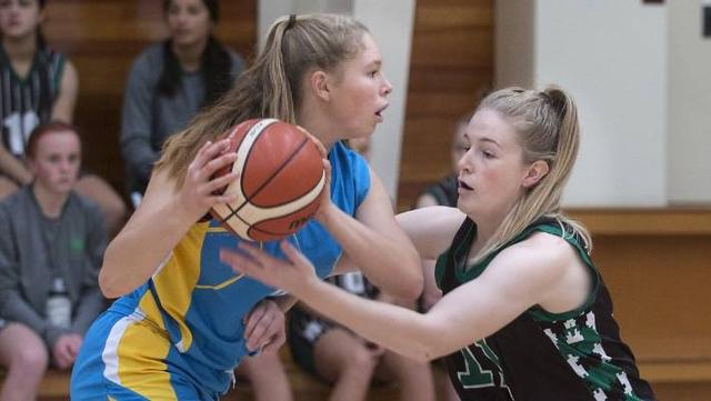 Millie Ford and Jorja Miller advance down the court in the South Canterbury Stealers' 57-39 win over Otago.