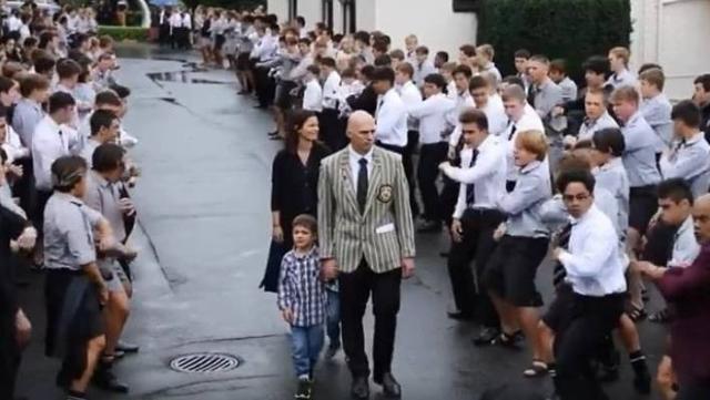 Departing principal Paul Veric is farewelled by New Plymouth Boys' High School students.