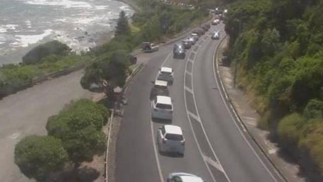 State Highway 1 north of Wellington is blocked after a motorbike versus truck crash north of Pukerua Bay.