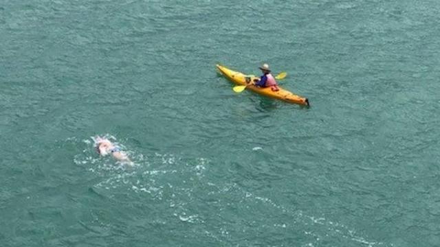Swimmers had the choice of tackling it solo or in teams, and all were required to have their own dedicated kayaker and support crew in a nearby boat.