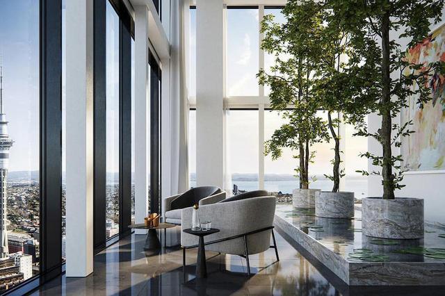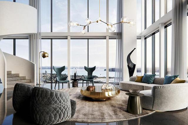 Auckland, New Zealand is making way for the most expensive real estate around. Their new construction atop the Pacifica building is going on sale with Sotheby’s as the highest-up property in the city. The two story Pacifica Super Penthouse sprawls at 13,000 square feet at 53 stories above Auckland’s Waitemata Harbor.