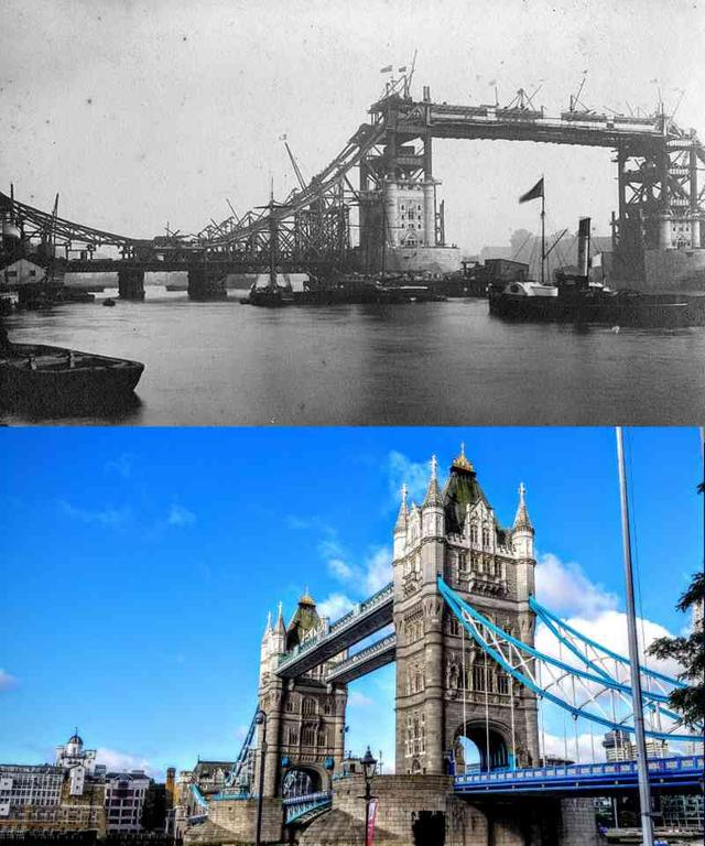 2. The Tower Bridge in London, England, from 1894 to 2017. This viaduct adjacent to the Tower of London, a historic castle, took 8 years to build and has now become a staple attraction for visitors from around the world. In 2008, the bridge began to undergo what was a four-year-long major renovation project, which included LED lights and a new paint job, says The Telegraph.