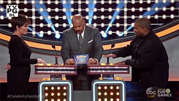 The Kardashian and the West families face off on Celebrity Family Feud on Sunday, June 10, and based on the new teaser, you’re not going to want to miss this episode. Kris Jenner shared the first look on her Instagram account, and the clip makes it incredibly clear that Kanye West came to win. The footage starts with host Steve Harvey asking Kris and Kanye to name a reason they think Steve would be a good kisser. The “Famous” rapper doesn’t even hesitate before slamming that button and responding, “Lips.” Steve gives him a look, but ‘Ye just says, “”I’m here to win bro. I’m here to win.” Yeah, he is!
