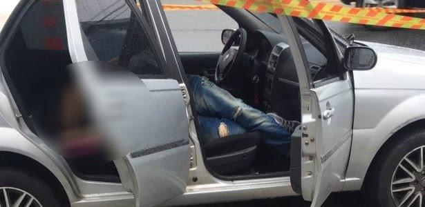 A reportagem teve acesso a uma imagem do crime, forte, que mostrava o homem morto com as pernas no banco da frente do carro.