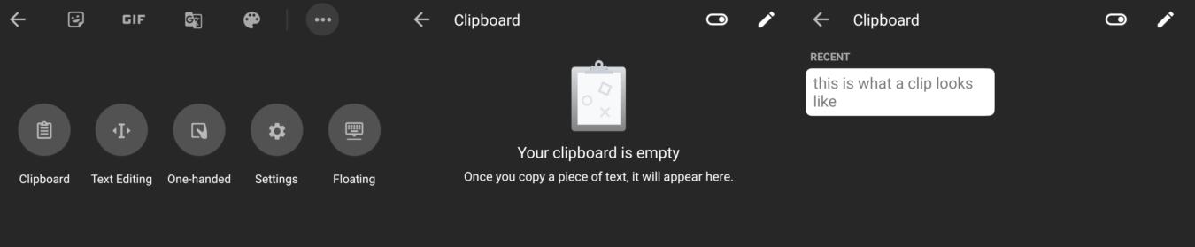 My only minor complaint is that you must tap the (G) icon and then also tap the ellipses on the other side of the window and then finally tap the clipboard icon to reach the simple feature; why not just have the clipboard and all other similarly unreachable functions accesible from the same menu as emoji/gif/etc…?