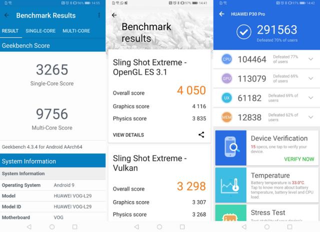 We don’t place much stock in benchmarking apps, but we’ve put the P30 Pro through its paces in GeekBench 4, 3D Mark, and Antutu so you can get a general idea of how the Kirin 980 performs.